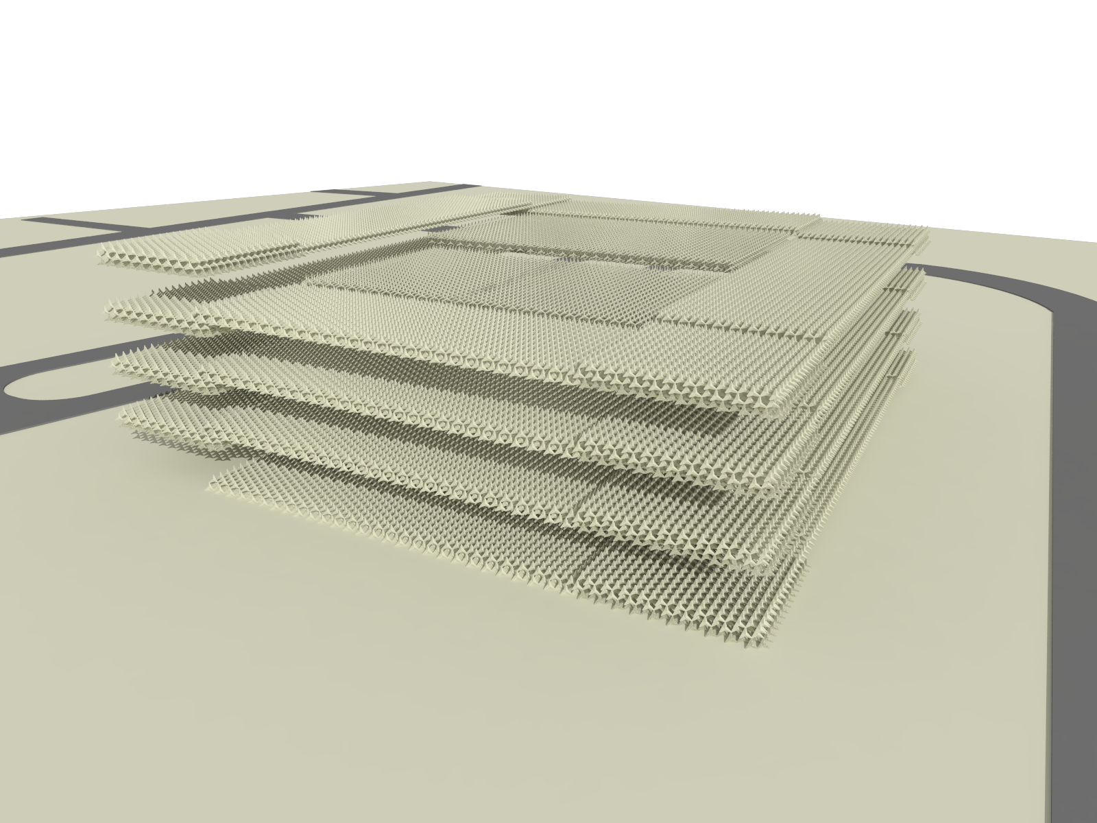 Effectively, this structure functions like a space frame – lightweight and porous – only better, because it can extend vertically.